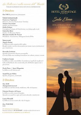 Seguiranno gli interventi di Angelo Garini (ambasciatore della bellezza italiana nel mondo, esperto di wedding, di promozione di territori e turismo matrimoniale) con "La Bellezza nella scoperta delle radici. Borghi storici e territori da scoprire per creare nuove destinazioni per i matrimoni”, di Rossella Celebrini con “Quando il territorio diventa scenografia. L’isola d’Elba una wedding destination tra cultura, natura e resort”, di Umberto Garini con "La Bellezza nella sostenibilità, La tendenza è quella di scegliere il bello nell’ambiente che ci circonda che dobbiamo apprezzare e preservare”, di Paola Pizzo di Sposi Magazine con “La Bellezza nel Matrimonio”, di Pino Musarella della Small Fly con “Small Fly per l’Elba: qualità, frequenze, continuità”.
