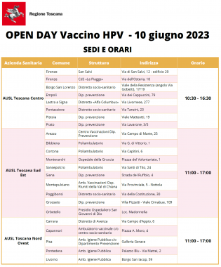 All’open day del 9 e 10 Giugno potranno partecipare tutte le ragazze e i ragazzi di 11 anni compiuti e coloro che ne hanno comunque diritto in base al calendario vaccinale regionale.